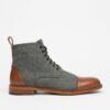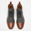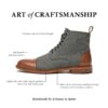グレー/ブラウンのザ・ジャックをご紹介しよう。このブーツはすぐに私たちのシグネチャー商品となりました。カーフスキンのインナーライニングが100%のウールアッパーをサポートし、骨格を作ります。ソールユニットはレザーで、グリップ力と耐久性、快適性を高めるためにラバーが挿入されています。フォーマルな服装からカジュアルな服装まで、多目的に使えるブーツです。履いた瞬間から、その快適さと品質の高さがわかる。