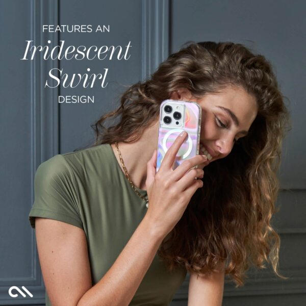Stay unique— the Soap Bubble™ MagSafe Phone Case for the iP 15 Pro Max features an iridescent swirl design that changes hues with every move you make! We know how much you love your phone. so feel confident knowing it’s safe with 12-foot drop protection while strong built-in magnets allow for easy MagSafe accessorizing and charging.